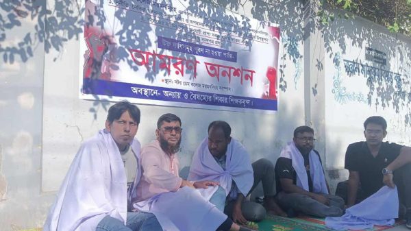 ময়মনসিংহে কাফনের কাপড় পরে অনশনে নটর ডেম কলেজের বহিষ্কৃত ৭ শিক্ষক