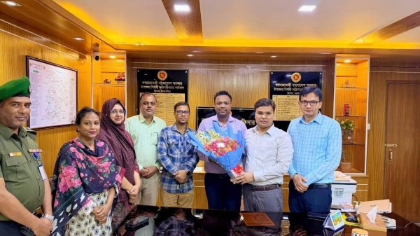 ত্রিশালে পদোন্নতি পাওয়ায় সহকারী কমিশনারকে ফুলেল শুভেচ্ছা