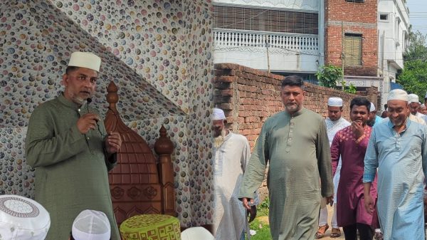 জুমার নামাজ শেষে ড্রেনেজ সংকটে সরেজমিনে প্রশাসক রোকন।